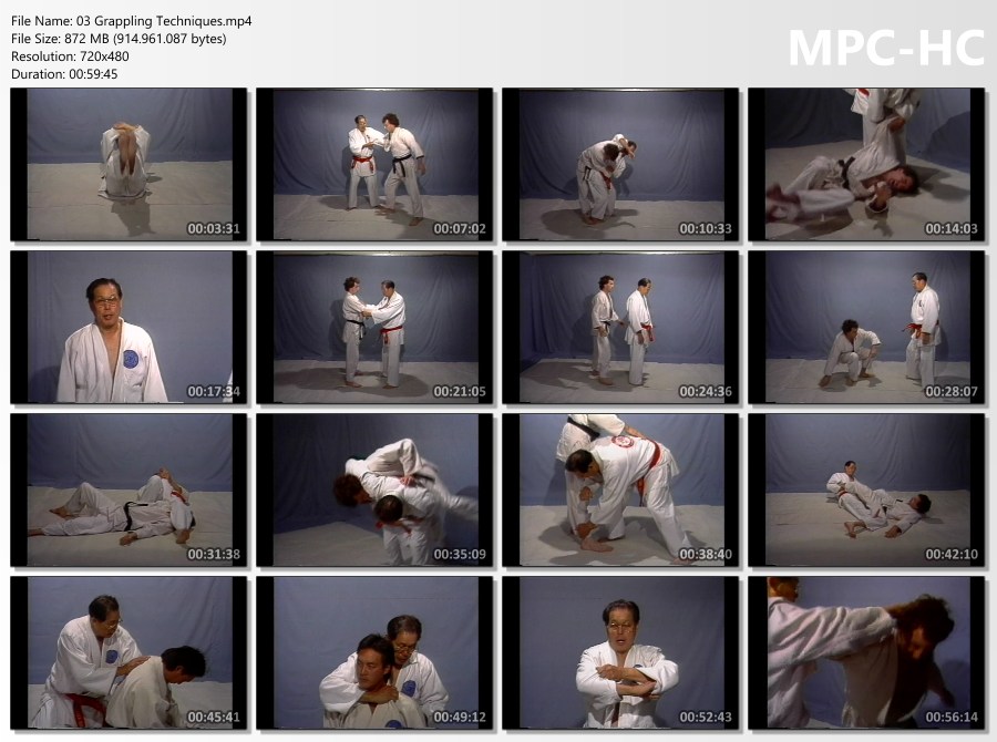 Professor Wally Jay teaches his unique Small-Circle Jujitsu Self Defense method covering warm-ups, falling and resuscitation; details on weaknesses of the human body; locking techniques for wrists, fingers, arms, and legs; throwing and choking techniques; and self-defense against strikes, chokes, body grabs, wrist grabs, etc.
