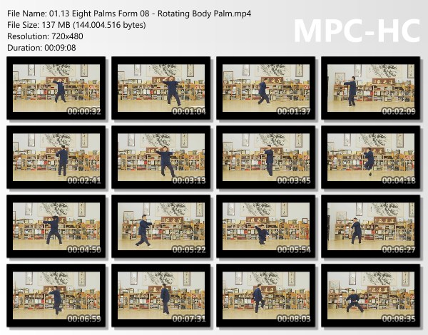 Bagua zhang translates to “eight trigrams palm”. The Eight Palms movements and sequence comprise the fundamental training for all bagua students.